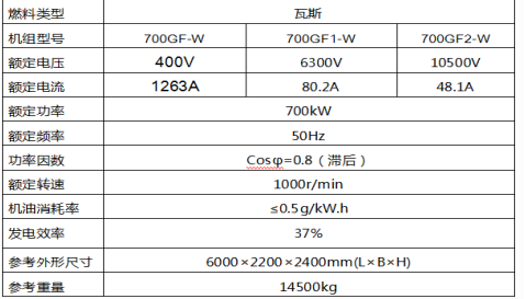 700kW瓦斯发电机组